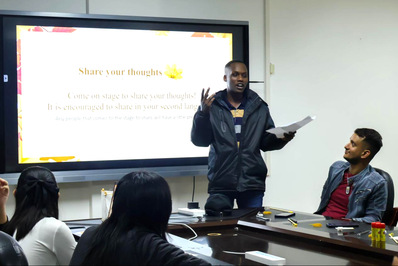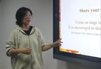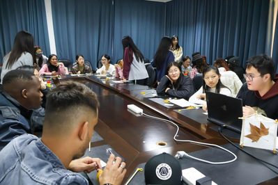 全场人员分成四个小组围绕“秋”这一主题展开深入讨论。中国学生向留学生们介绍了有关秋的中国成语,留学生讲述了他们家乡在秋季的传统文化习俗。不少参与者主动走上讲台,分享他们在小组讨论中的所学所感。小组间的交流与沟通再次加深了彼此对双方文化中“秋”的理解。
