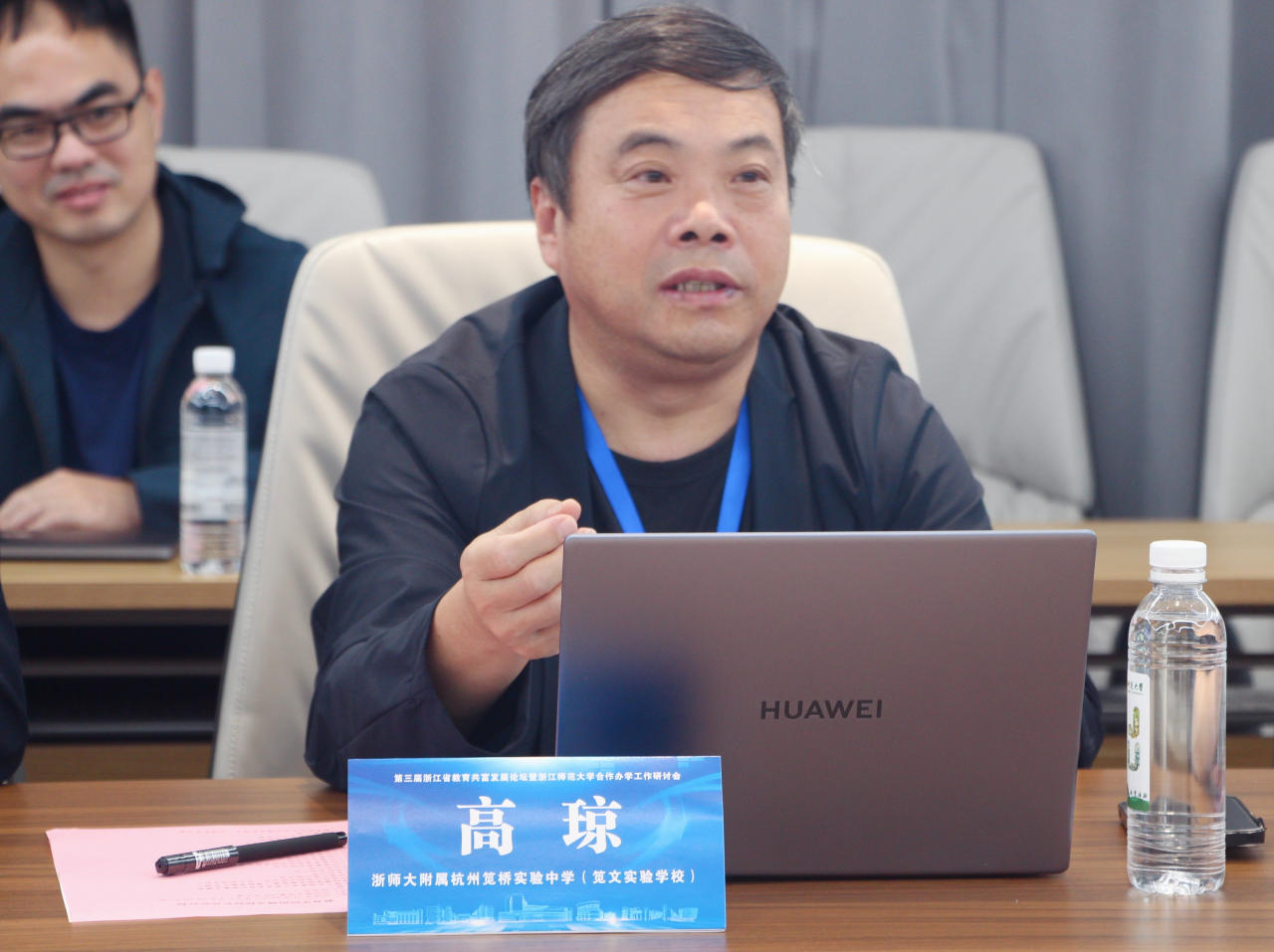 浙师大附属杭州笕桥实验中学(笕文实验学校)书记、校长高琼指出附属学校要利用好浙师大及教育学院在学校发展瓶颈期、发展期和收获期提供不同的资源和帮助,用好浙师大教育学院的资源和平台,助推附属学校高质量发展。