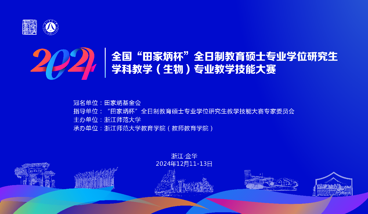 12月12日,2024年全国“田家炳杯”全日制教育硕士专业学位研究生学科教学(生物)专业教学技能大赛决赛在浙江师范大学举办。大赛由浙江师范大学主办,浙江师范大学教育学院(教师教育学院)承办。