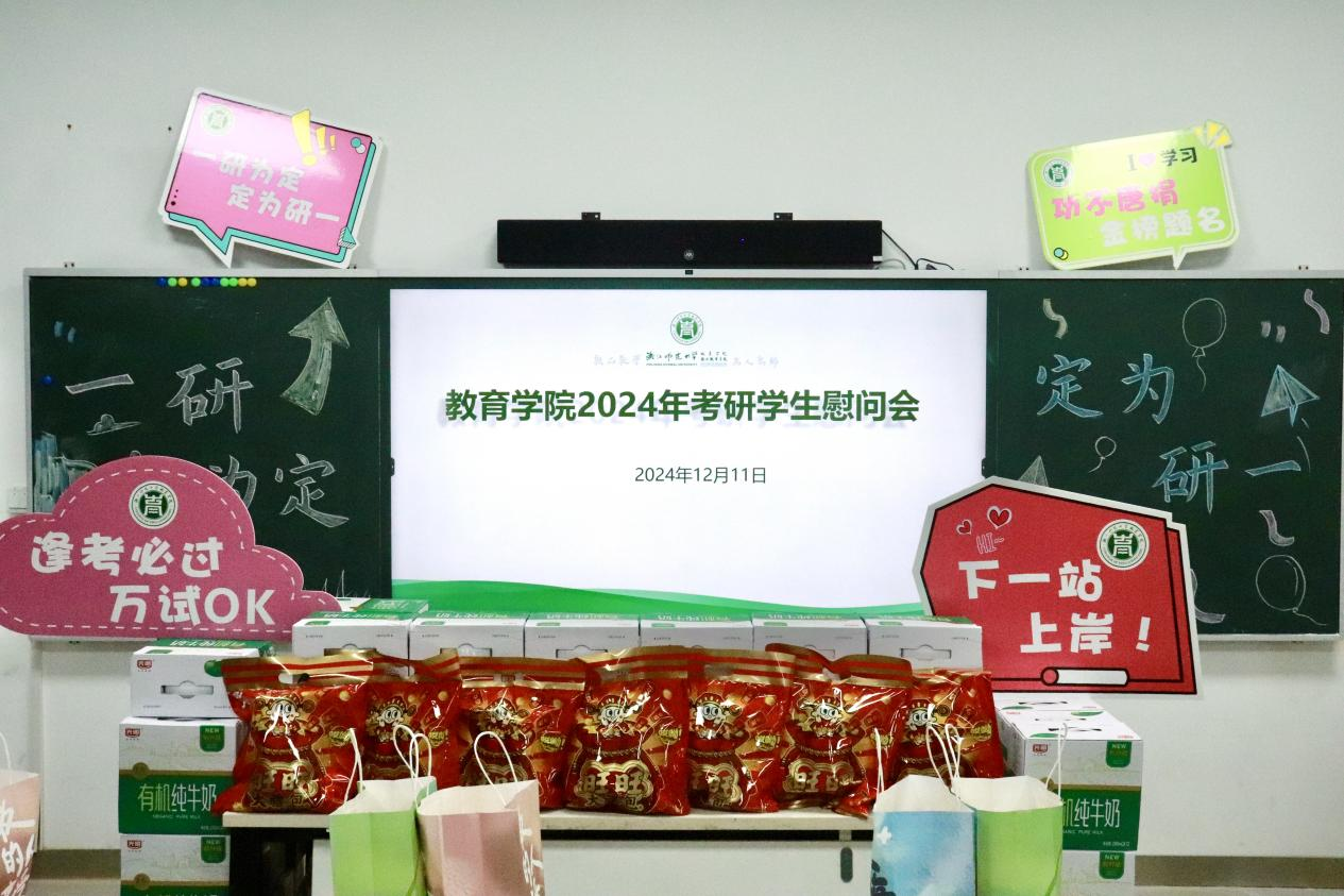 功不唐捐,玉汝于成。为给奋力冲刺的考研学子送去温暖与力量,教育学院于12月11日下午在17幢112多媒体教室举行“一研为定,定为研一”考研慰问活动。副校长兼教育学院院长林一钢,教育学院党委书记苏煜,衢州学院教师教育学院党委书记丰爱静,教育学院党委副书记王晓均、副院长王占军、年级辅导员王萌、蔡鑫以及本科毕业班班主任出席活动。王晓均主持活动。