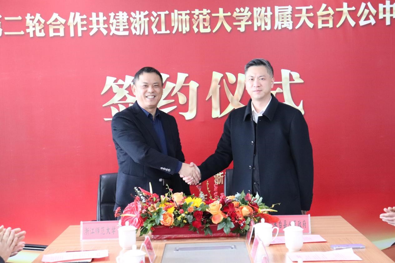 12月25日,浙江师范大学与天台县人民政府关于天台大公中学第二轮合作办学签约仪式在大公中学顺利举行。