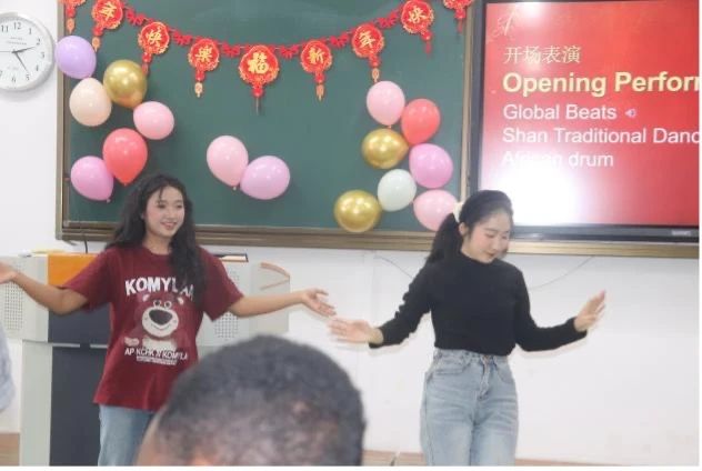 当欢快的音乐响起,由尼泊尔籍博士生YONZON SHIKCHHYA,秘鲁籍本科生OBANDO HERRERA ANGIE CRISTINA,缅甸籍硕士生HTET HTET SANDY,本科生NANG NAW NGIN、SHENG TAN五人带来的体现国际友谊的热情之舞《Global Beats》和缅甸籍本科生NANG NAW NGIN、SHENG TAN带来的缅甸风情曼妙之舞《Shan Traditional Dance》,将现场的气氛瞬间点燃。