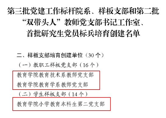 教育技术学系教师党支部荣获“全国党建工作样板支部”培育单位称号。