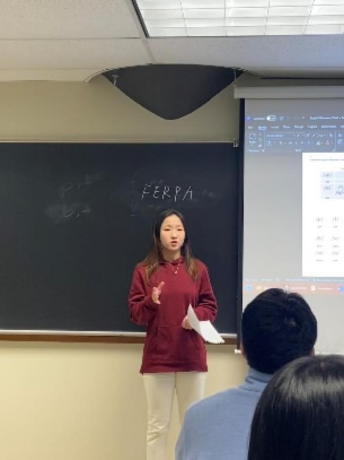 在Professor Darren Interpersonal Communication的课堂上,有一个特别的课堂任务——每位同学用两分钟的时间介绍OSU不同模块的内容,包括学术资源、健康服务、校园建筑等,这一“导游”任务活动不仅提升了我们信息整合和英文表达的能力,更让我们进一步了解到OSU这所世界一流大学的历史与文化。