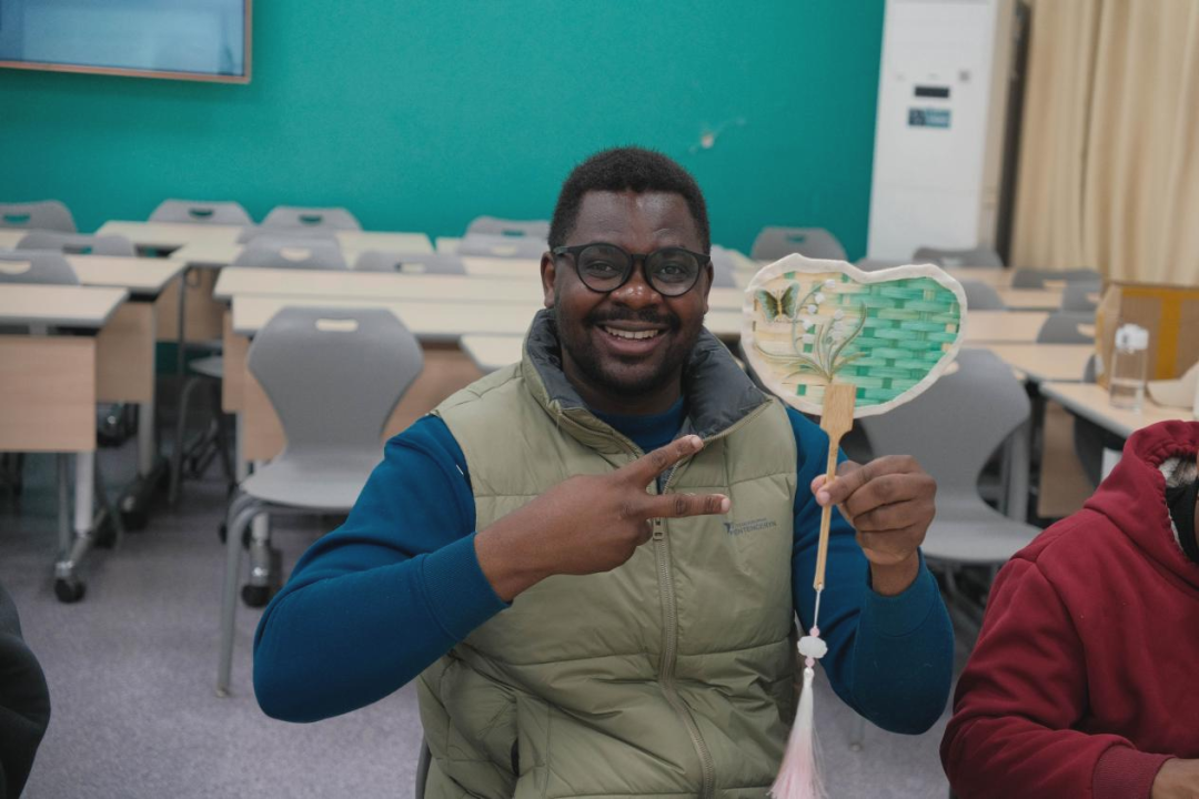 纤细的竹条在指间穿梭着,中外学子一同沉浸在竹编的艺术世界里。在竹编扇制作环节中,主持人通过讲解和示范,引导参与者掌握“挑一压一”的编织规律。经过精心编织,一件件独具匠心的竹编扇逐渐成型。大家拿着亲手制作的竹编扇,脸上洋溢着自豪的笑容,**间,不仅微风拂面,更传递出春日的美好与诗意。