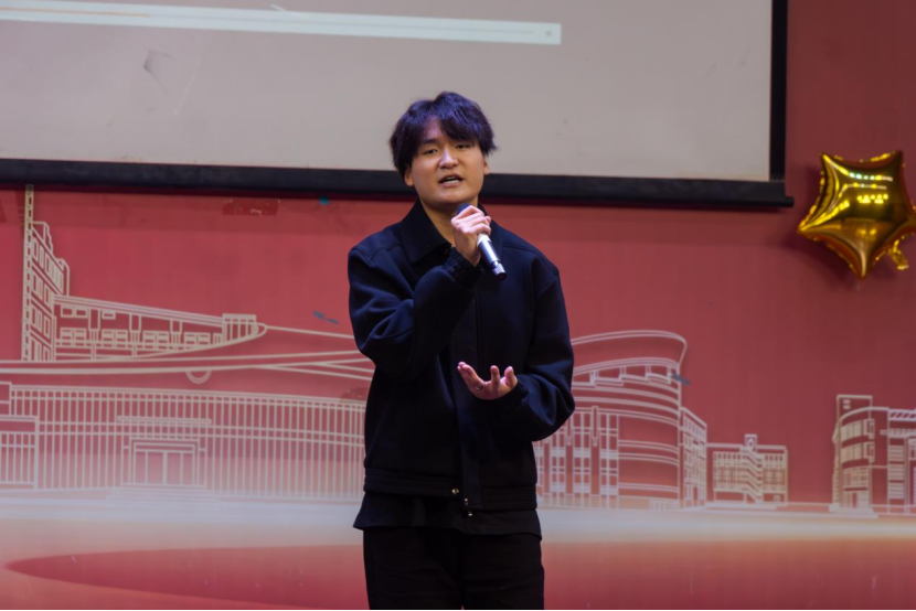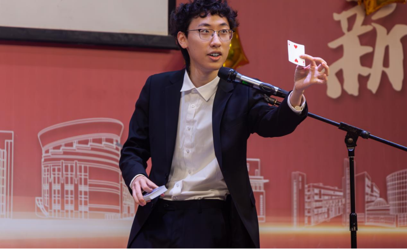 游戏之后,现场进入魔法秘境。来自小学教育2402班的朱鸣宇带来别开生面的魔术表演,神秘奇幻,令观众惊叹连连。