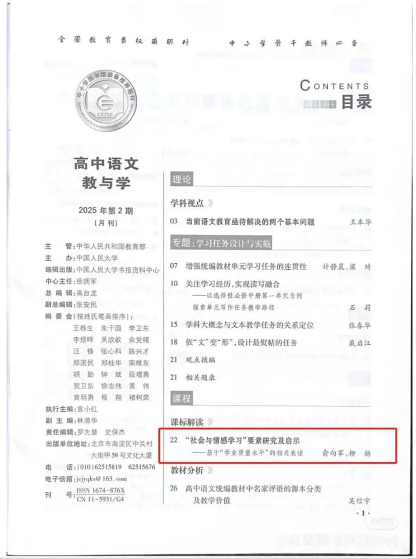 近日,教育学院俞向军老师与其硕士研究生柳扬发表的论文《“社会与情感学习”要素研究及启示——基于“学业质量水平”的相关表述》被人大复印资料全文转载。