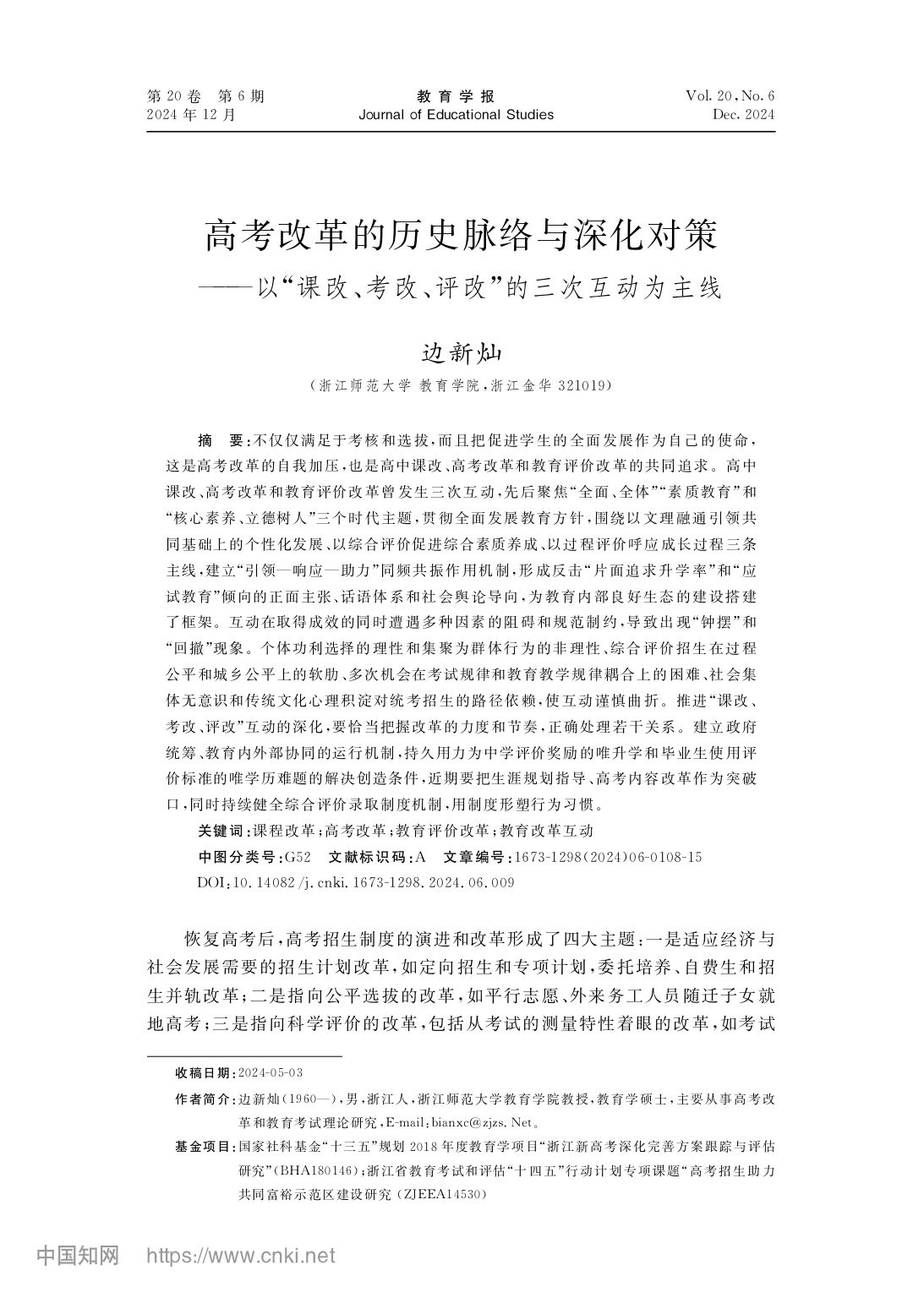 2024年12月,教育学院边新灿教授在《教育学报》刊发署名文章《高考改革的历史脉络与深化对策——以“课改、考改、评改”的三次互动为主线》。《高等学校文科学术文摘》今年第3期以“推进和深化‘课改、考改、评改’互动的高考改革”为题予以摘载。