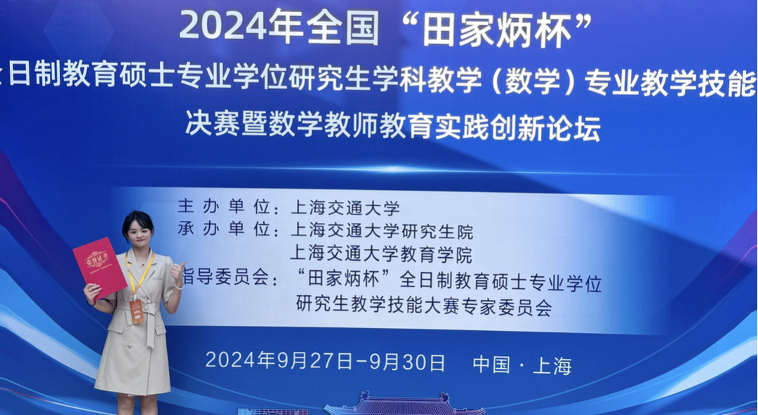 距离初次与师大、与教育学院相遇已有七年时光。从面对课题 “丈二和尚摸不着头脑” 的懵懂,到能在三尺讲台侃侃而谈,教育学院为我提供了学术提升与教研进步的丰沃土壤;从 “活动小白” 到能够独当一面的 “核心主创”,浙师给予了我施展才干的 “大舞台”。作为一名 “浙师支教人”,我倍感光荣。我深知,今日的荣誉不仅属于我个人,更是浙师历届研究生支教团精神的薪火相传。未来,我将铭记师长教诲,扎根基层,潜心教学,在更高的舞台发出浙师教育人的声音。