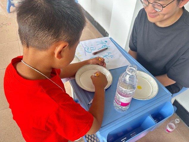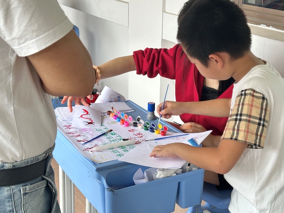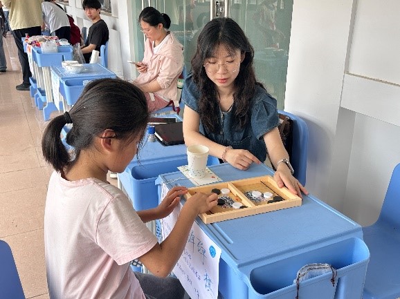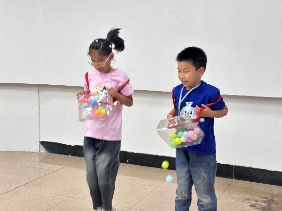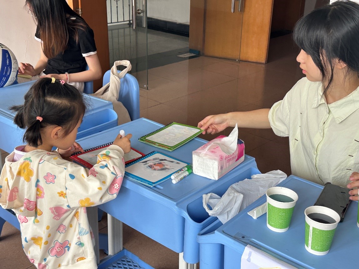童趣筑梦板块包括放大的世界、魔法蜡烛、会飞的纸屑等九项活动。孩子们透过放大镜探索微缩奥秘,用“魔法蜡烛”变幻出七彩的图画;“会飞的纸屑”和“纸杯传声筒”让孩子们体验了静电的奇妙与声音传递的乐趣。在“螃蟹赛跑”和“母鸡下蛋”等亲子协作项目中,家长与孩子默契配合,共享竞技的紧张与成功的喜悦。而“创意绘扇”项目更是人气爆棚,小小的圆扇成了孩子们的大画布,他们握着画笔,在圆圆的扇面上画出心中的彩虹、可爱的小动物或是想象中的奇妙世界,专注的小脸上绽放出发自内心的灿烂笑容。