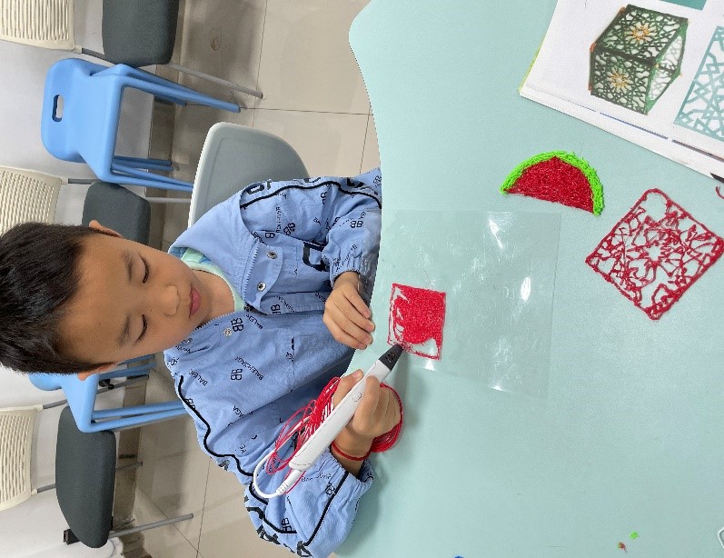 本次活动与科技元素紧密融合,让孩子们用科技触碰未来。孩子们亲手操作3D打印笔,通过基本图形的制作与拼接,让天马行空的想象跃然手中。孩子们沉浸在科技体验的魅力之中,他们通过编写指令与机器人“对话”,指挥它们完成投篮、绕障行走甚至趣味对战等任务。每一次成功的指令下达和机器人的精准执行,都让孩子们体验到科技的魅力所在,让人流连忘返。