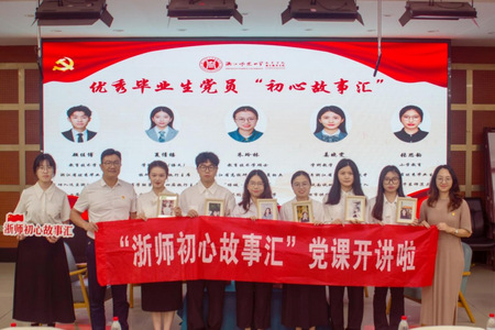 在“浙师初心故事汇”中,毕业生党员朱玲林、夏倩禧、姜晓雯、顾佳博、张思韵分享了他们的初心故事。他们结合支教历程、教学实践、学生工作等经历,生动展现了“学思用贯通、知信行统一”的实践成果:朱玲林运用教育技术与游戏化教学助力乡村教育提升;夏倩禧分享在学科教学中融入德育的实践经验;姜晓雯分享了备考中的时间管理智慧;顾佳博介绍了高效处理学生工作的经验;张思韵则从挫折中汲取成长动力,在创新创业中勇毅前行。他们的故事生动诠释了以初心为帆、在实践中淬炼担当的青春力量。