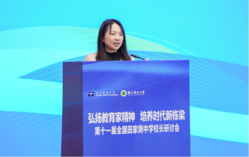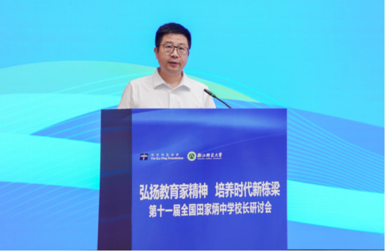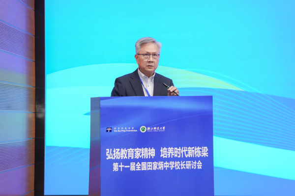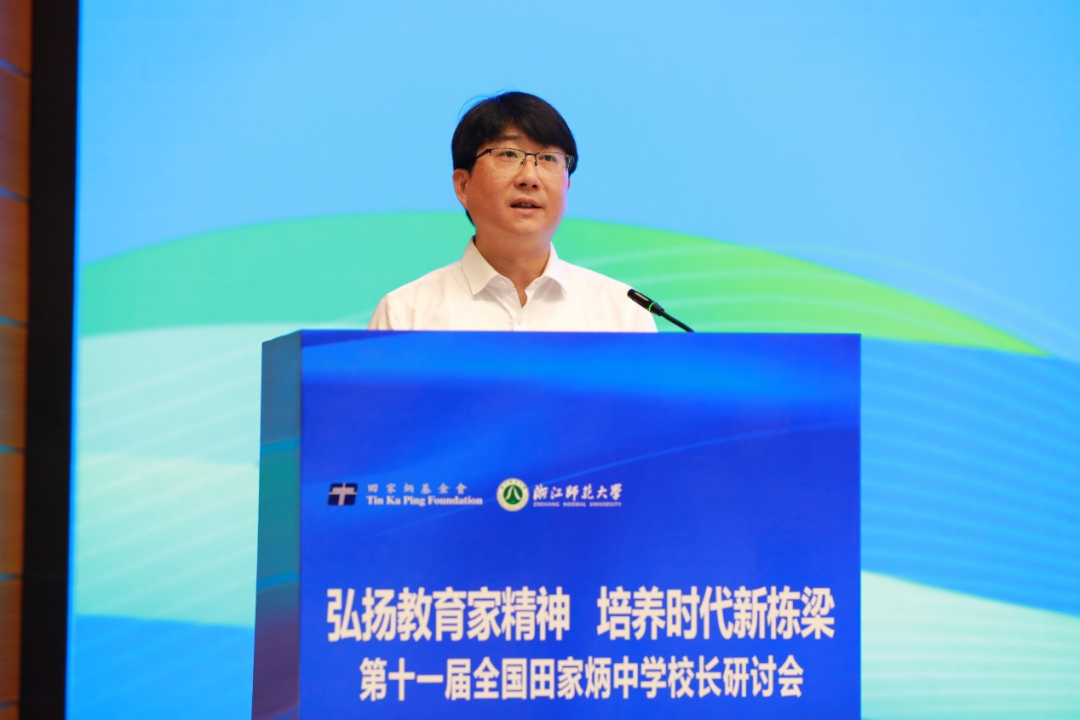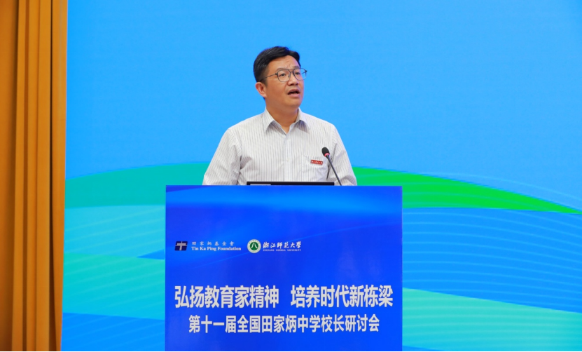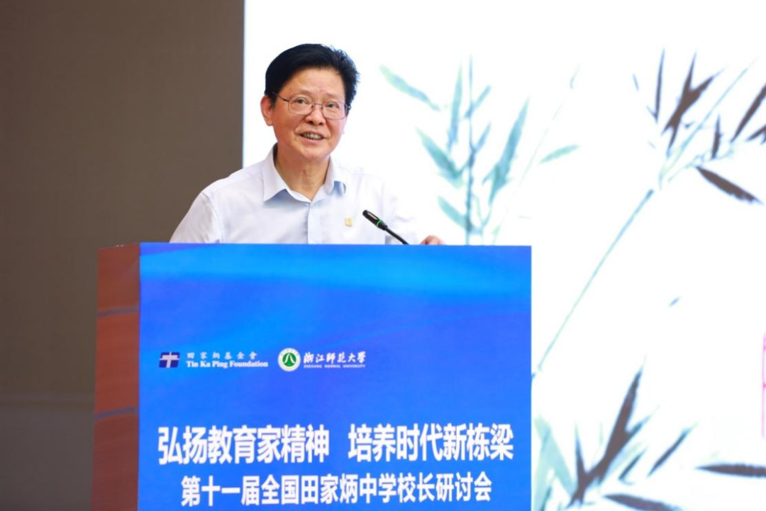 蒋云良在欢迎辞中表示,浙师的发展与进步,离不开上级部门的关怀和指导,也离不开田家炳先生和田家炳基金会的支持和帮助。此次研讨会将进一步加强浙师大与全国田家炳中学的紧密联系与合作。期待浙师大能在教育理念交流、课程教学改革、教师专业发展、学生联合培养、教育资源共享等方面与各所田家炳学校开展合作,共同探索高质量人才培养有效机制,共同构建高等教育与基础教育协同育人新生态,为促进我国教育高质量发展、办好人民满意的教育、助力教育强国建设贡献浙师智慧和力量。