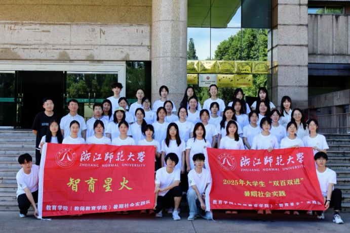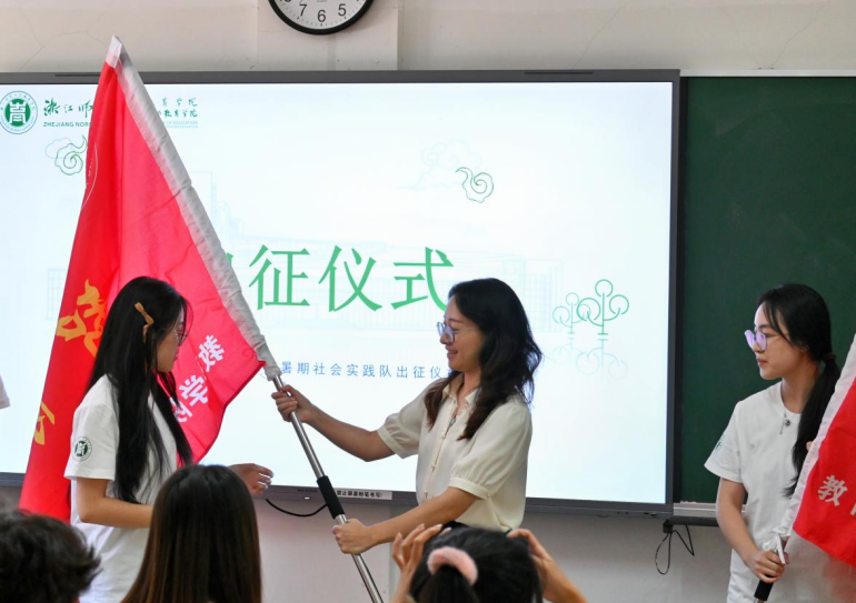 近日,浙江师范大学教育学院(教师教育学院)2025年暑期社会实践出征仪式于17幢135教室顺利举行。学院党委副书记王晓均,团委书记兼学工办主任刘景弟出席活动,辅导员兼带队老师江泽、朱寅宾、李峰、郭心雨和“智育星火”暑期社会实践队队员共同参加本次出征仪式。