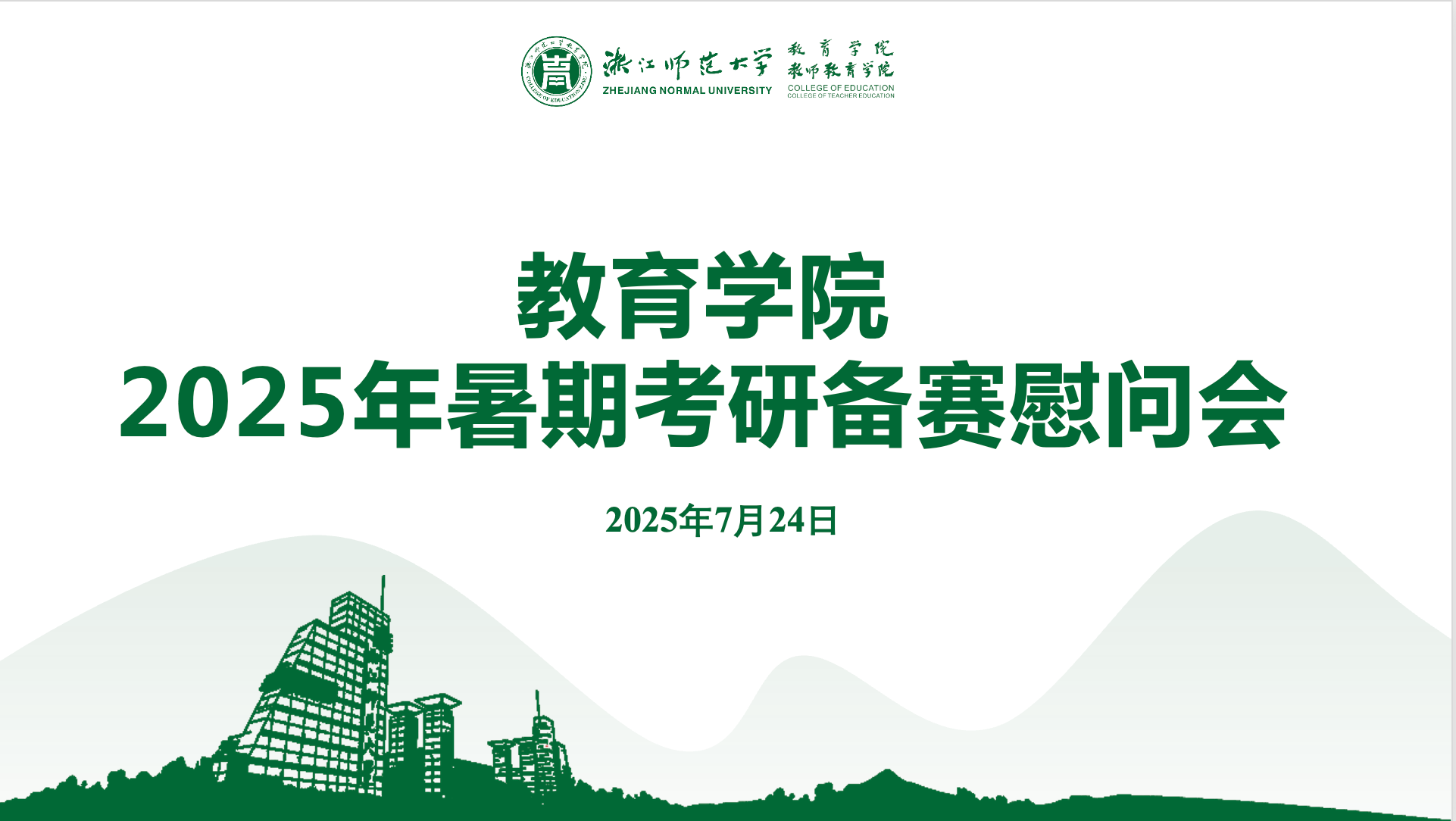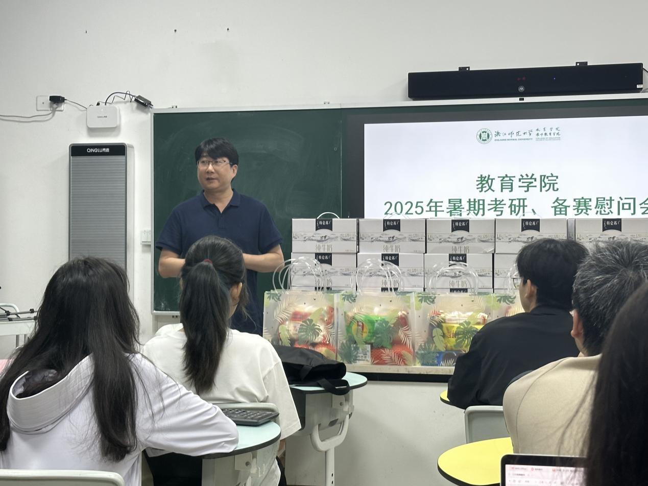 为助力考研、备赛学子高效备战,7月24日下午,教育学院(教师教育学院)于17幢112教室举办2025年暑期考研、备赛慰问会。浙江师范大学副校长兼教育学院(教师教育学院)院长林一钢、学院党委书记苏煜、党委副书记王晓均,辅导员冯奕程、朱寅宾等出席会议,与留校备考、备赛学生交流慰问。