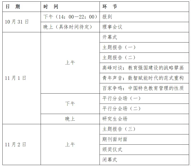 本届年会以“面向教育强国建设的中国特色教育管理”为核心主题,将于2025年10月31日-11月2日在浙江师范大学举行(具体报到及会议地点请关注后续通知)。年会旨在汇聚学界智慧,深入探讨教育强国建设背景下中国特色教育管理理论创新与实践突破。