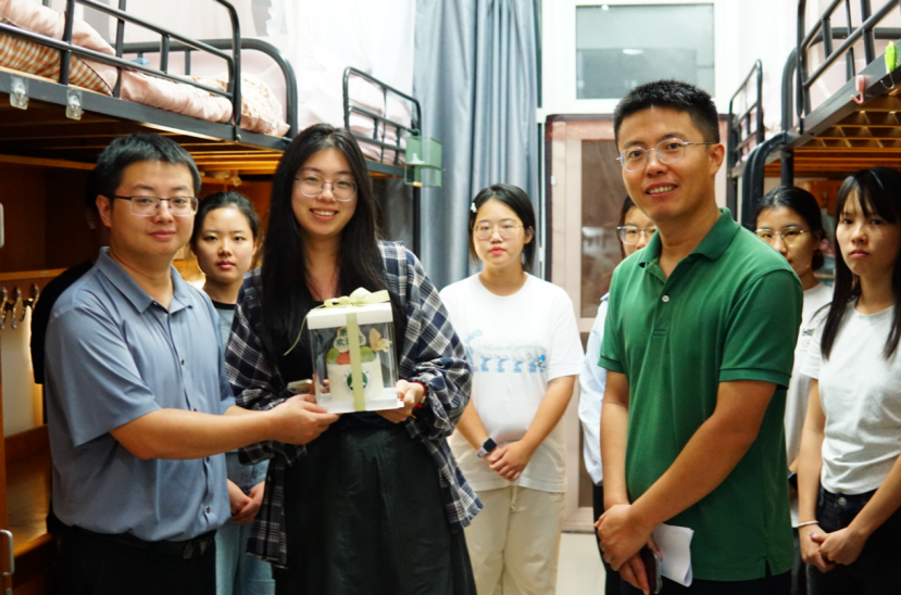 时值同学生日,学院领导特别准备了生日蛋糕,师生欢聚共庆,温情洋溢,体现了教院大家庭的浓厚人文关怀。