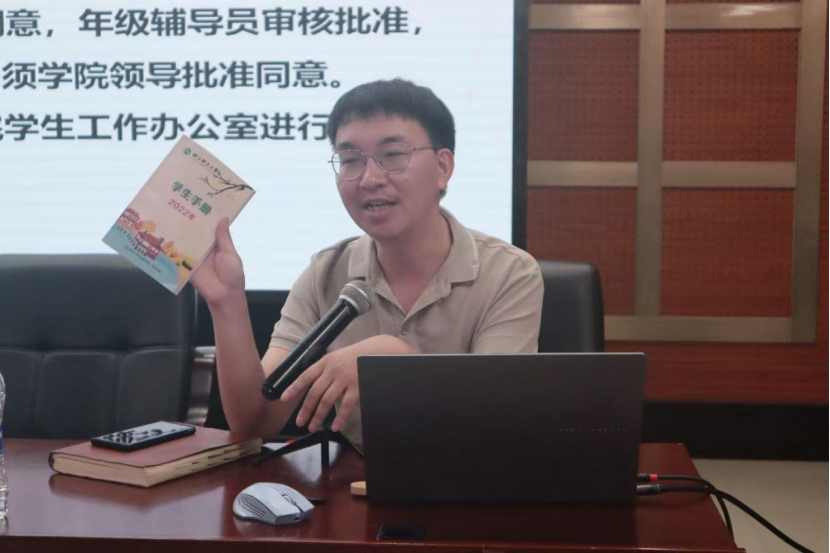 为更好推进军训期间的组织与管理,9月17日上午,教育学院(教师教育学院)在17幢112报告厅组织召开2025级新生“军训第一课”暨“安全第一课”主题会议。学院党委副书记王晓均、团委书记兼学工办主任刘景弟出席会议,新生辅导员郭心雨及全体2025级新生参加。
