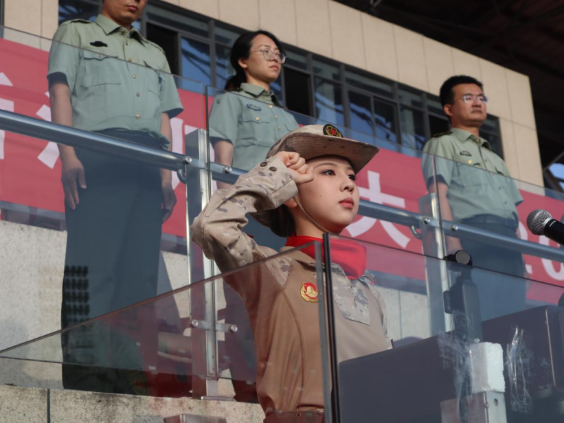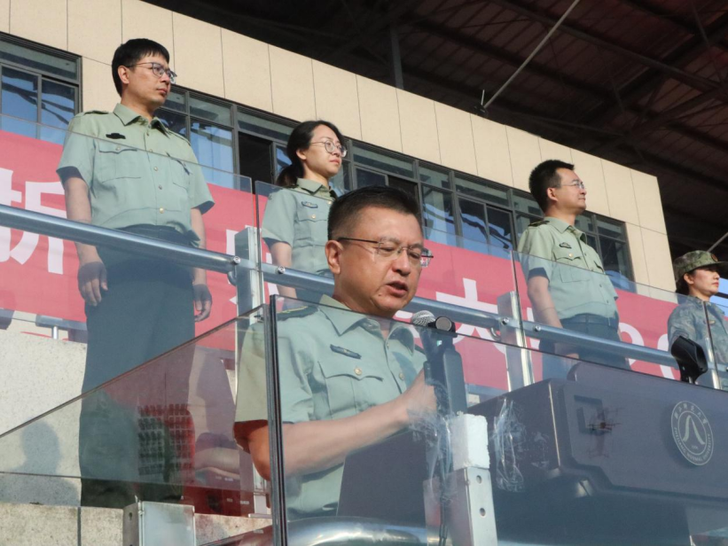 王晓均重点强调了军训期间及平时校园生活的安全注意事项,并向同学们提出三点要求:一是严格遵守军训规章制度,牢固树立安全意识,坚决防范各类风险隐患;二是合理安排时间,统筹好军事训练、专业学习与作息生活,保持良好状态;三是积极培养健康有益的兴趣爱好,注重心理调适,保持乐观向上的心态。