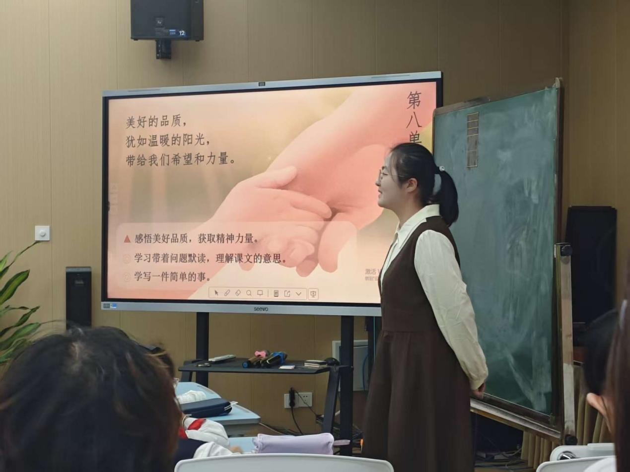 经过几天的听课和精心准备,不少同学已勇敢踏上小学讲台,完成了从“学生”到“教师”的角色转换。正所谓“纸上得来终觉浅,绝知此事要躬行”,为了短短一节课,大家倾注了大量心血:课前深钻教材,在试讲与导师反馈中精雕细琢教学设计;课上灵活运用教学方法,积极引导小学生思考互动;课后则结合指导老师的精准点评进行深刻反思。这一完整的教学实践链条,让大家对如何将知识生动化、生活化有了切身的体悟。