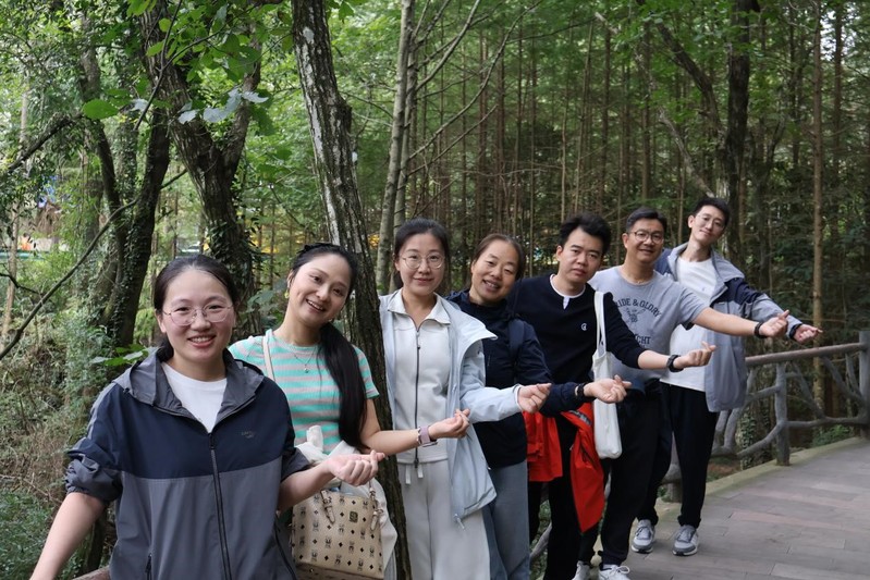 双龙溪峡谷内,绿树环绕,水雾弥漫,花椒挂满枝头。沿着溪流拾级而上,令人心境开阔、神清气爽。团友们一边欣赏秀丽的景色,一边热烈交谈——或探讨当前教育中存在的困惑以及教育孩子的方法,或交流文献资源与教学科研的对接,或分享运动拉伸与健康检测方面的知识,活动过程生动诠释着“医教同心,健康同行”的主题意义。