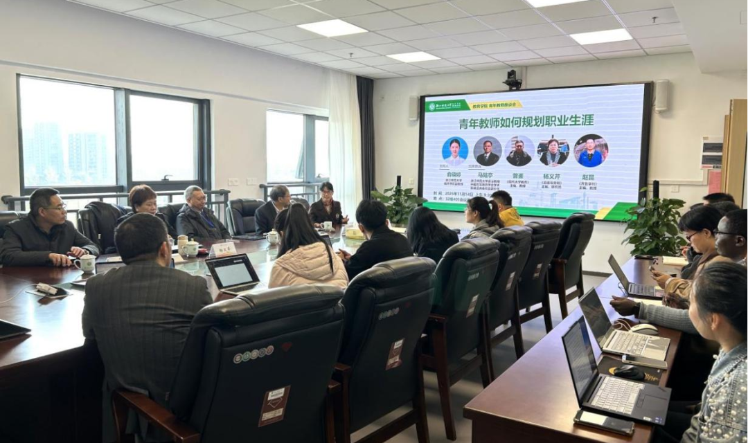 为深入贯彻《教育强国建设规划纲要(2024-2035年)》战略部署,积极响应教育部等多部门《关于加强新时代高校青年教师队伍建设的指导意见》要求,切实助力青年教师明晰发展路径、提升专业素养,教育学院(教师教育学院)于11月14日上午在32幢405会议室成功举办“青年教师如何规划职业生涯”主题座谈会。会议特邀浙江师范大学资深教授、中国高等教育学会学术发展咨询委员会副主任兼秘书长马陆亭教授,《现代大学教育》主编曾崟教授,《道德与文明》主编杨义芹研究员,《齐鲁学刊》主编赵昆教授等知名专家学者莅临指导。座谈会由教育学院教育基本理论研究所副教授俞晓婷主持。