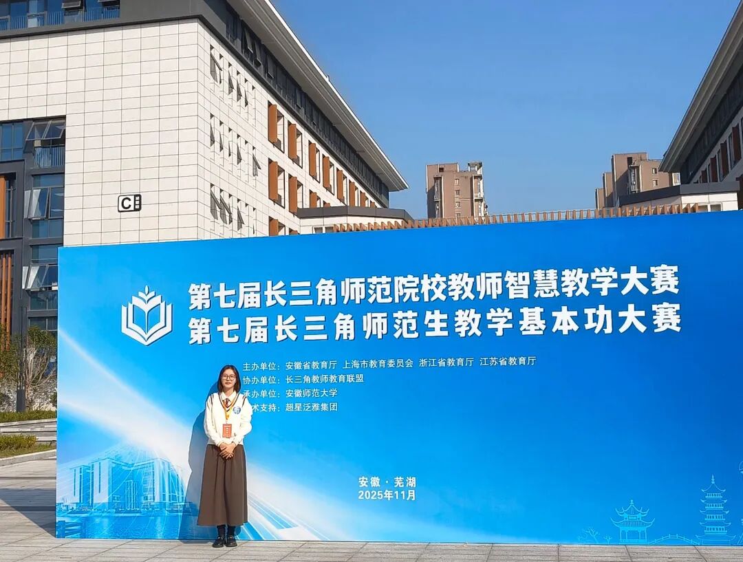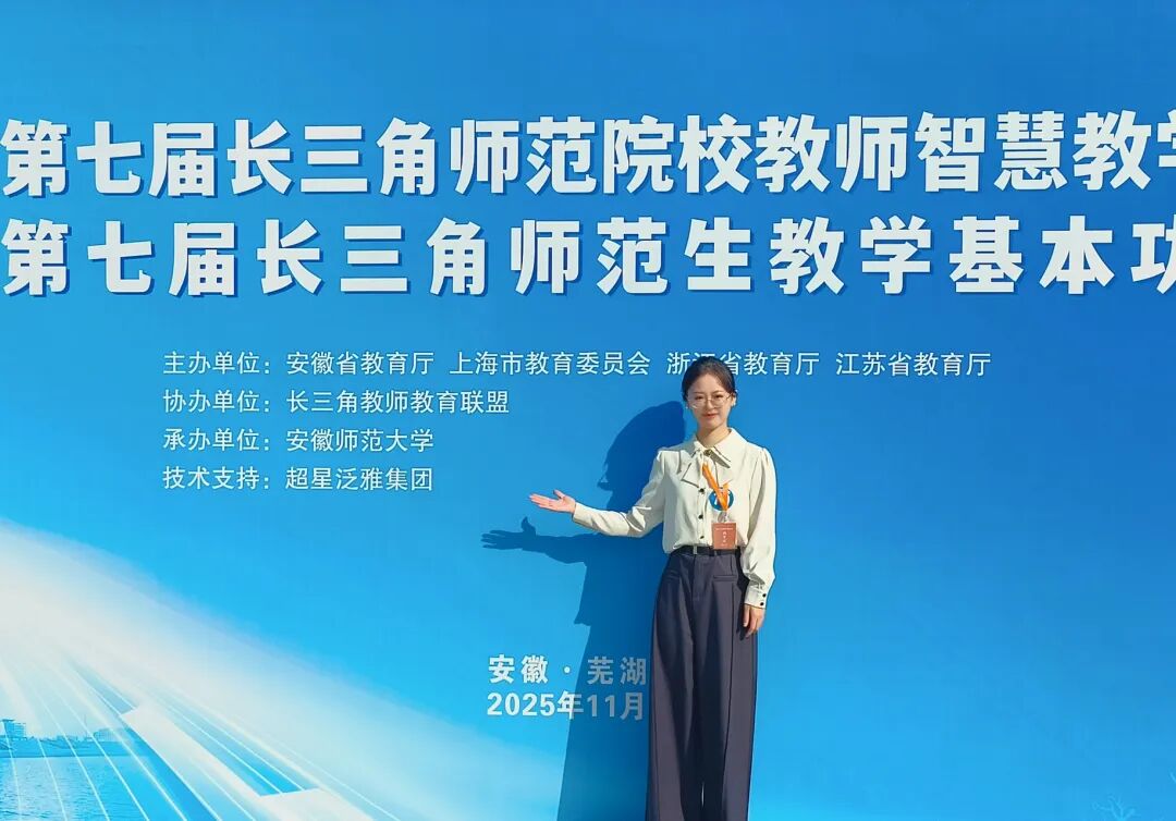 11月14-16日,由安徽省教育厅、上海市教育委员会、浙江省教育厅、江苏省教育厅共同主办的第七届长三角师范生教学基本功大赛在安徽师范大学举行。我院学子凭借扎实的专业功底、创新的教学设计和出色的现场发挥,最终斩获两项一等奖的优异成绩,其中王冰冰同学获得小学组一等奖,柯梦婷同学获得综合组(信息技术)一等奖。继十九届浙江省高等学校师范生教学技能竞赛的成绩有了新突破,充分展现了我院师范生培养的实力与学子风采。