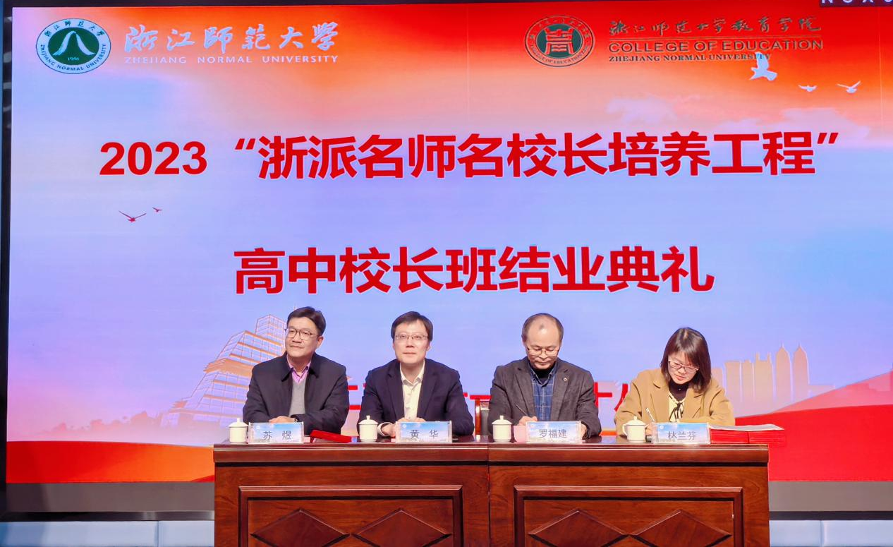 2025年11月28日下午,2023浙派双名高中名校长培养项目结业仪式在温州龙湾中学举行。温州市教育局、浙江师范大学相关领导与来自全省20余所高中的校长学员齐聚学术报告厅,共同见证这一历时两年的高端培训圆满收官。仪式由浙江师范大学教育学院(教师教育学院)社会服务中心副主任林兰芬主持。