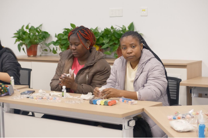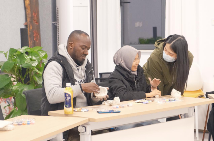 创作环节,教室里顿时热闹非凡。双手揉压间,泥土逐渐细腻;指尖捏塑中,形态渐次生动。有人遵循古法,塑出憨态可掬的生肖动物;有人融汇本国符号,让异域风情于指尖绽放;更有中外学子携手合作,将不同文明的印记镌刻在作品之中。志愿者穿梭其间,耐心指导、及时解惑,助力每一份创意落地生根。