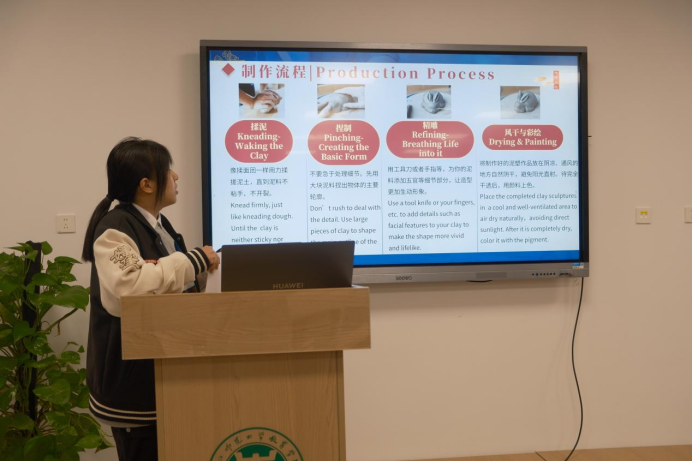 随后,志愿者登台示范,从揉泥、捏制、精雕到风干彩绘,逐步拆解,详尽讲解。国际学生们认真观摩,踊跃提问,暖意融融的互动中,技艺与知识悄然传递。