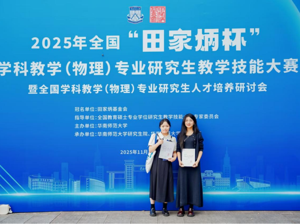 日前,2025年全国“田家炳杯”全日制教育硕士专业学位研究生教学技能大赛学科教学(物理)、学科教学(思政)、现代教育技术专业的决赛分别在华南师范大学、江西师范大学、山东师范大学举行。我院相关专业研究生参赛并荣获佳绩。
