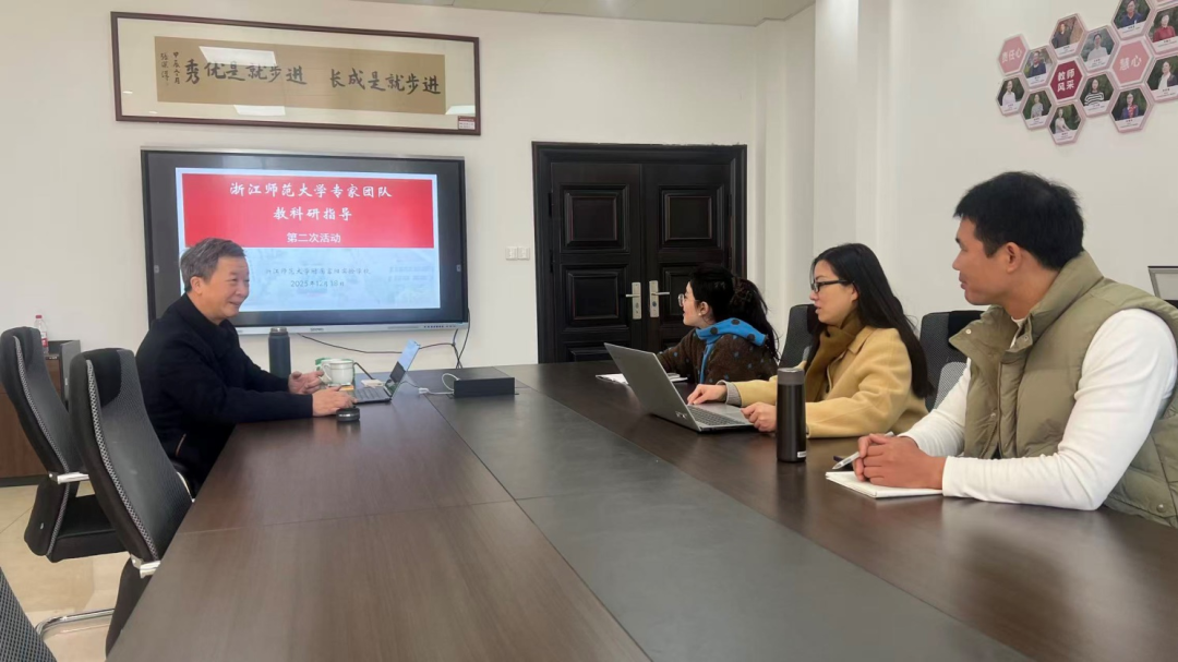 12月23日,特级教师赵寅芬赴浙江师范大学附属泗门实验中学开展专项指导,与校长潘建国、教科室主任陈主任等共同研定《青雁展翅工程之教坛新秀评比实战演练方案》,系统谋划青年教师成长路径。随后,与社会学科四位青年教师围绕校本课程《通俗世界科技发展简史》(八年级适用)开展集体研讨,明确课程育人目标,细化内容框架与实施分工,激发团队协作动力,助力青年教师在实践中实现专业突破与共同成长。