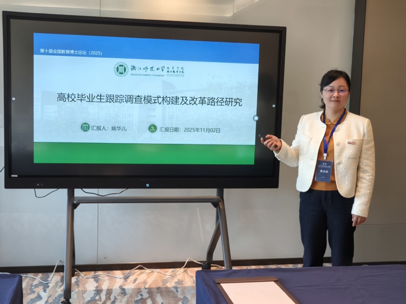 姚华儿分享高校毕业生跟踪调查相关研究。她汇报现有模式存在的局限,基于实证研究,引入CIPP模型,构建包括环境基础、资源配置、过程行动、成果绩效4个一级指标、12个二级指标和29个三级指标的毕业生就业状况评价指标体系,经层次分析法确定权重,提出“协同-跟踪-反馈-优化”四位一体新模式。专家点评时充分肯定该研究直击核心痛点、问题导向明确,实证数据严谨,为毕业生跟踪调查优化提供了可行路径。