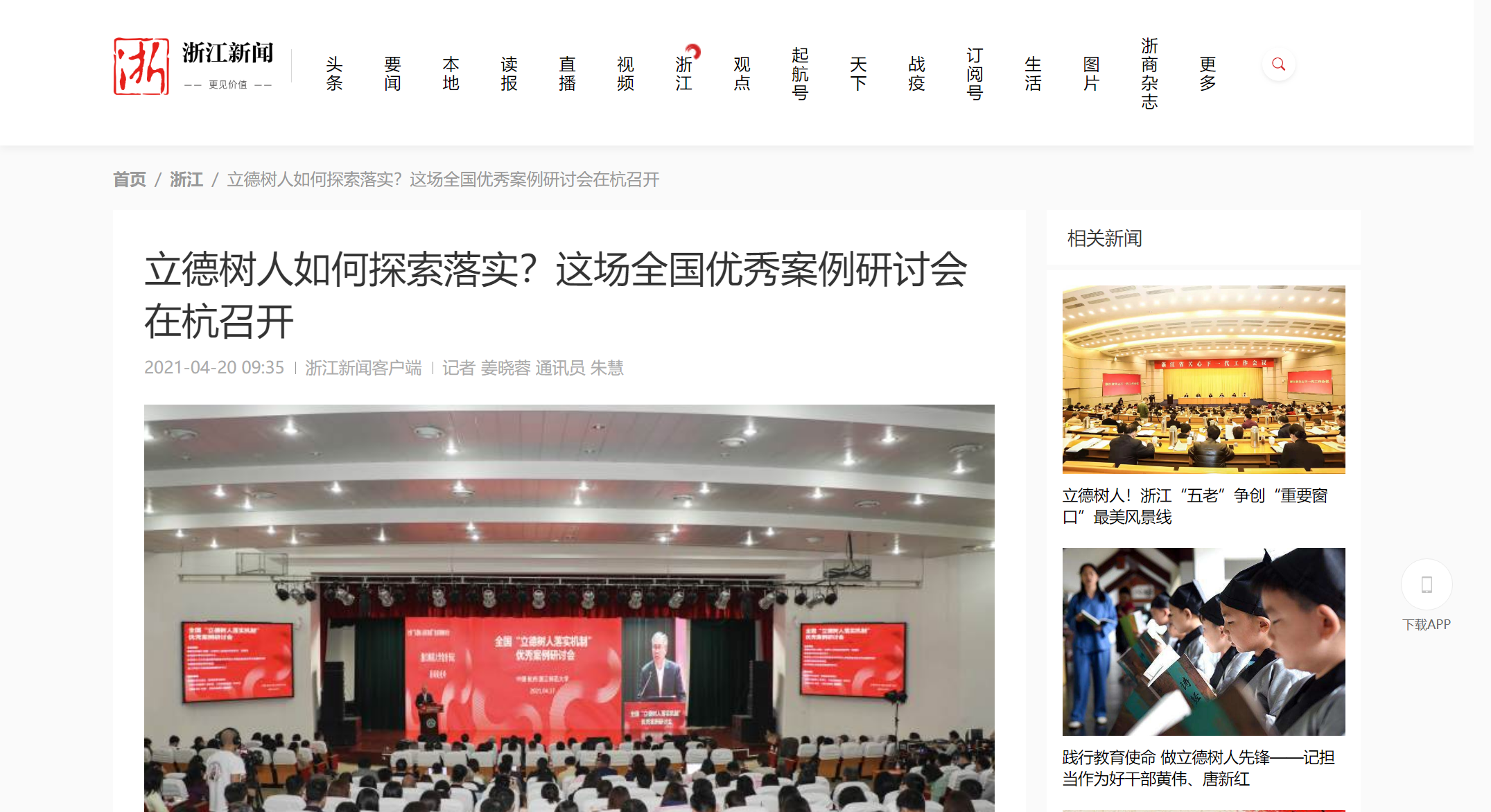 【媒体视角】浙江新闻客户端 :立德树人如何探索落实?这场全国优秀案例研讨会在杭召开