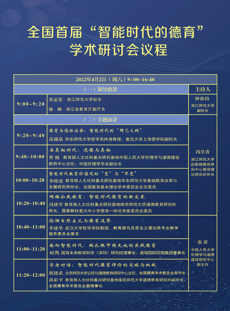 议程发布丨全国首届“智能时代的德育”学术研讨会