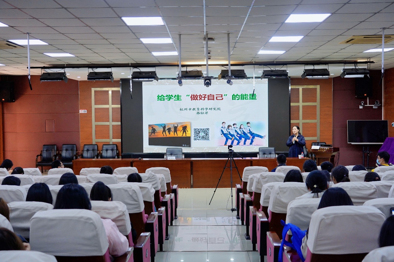 3月15日下午,“田家炳德育大讲堂”第七讲在浙江师范大学17幢112报告厅举行。浙江省德育特级教师、中国陶行知研究会青春期教育专业委员会常务副会长兼秘书长、杭州市家庭教育学会副会长韩似萍作了题为《给学生“做好自己”的能量》专题报告,讲座由浙师大田家炳德育研究中心(以下简称“中心”)儿童道德发展研究所所长李庆功教授主持,中心常务副主任查颖教授以及浙师大师生200余人聆听了报告。报告还吸引了来自全国田家炳中小学校的100余名教师在线参加。
