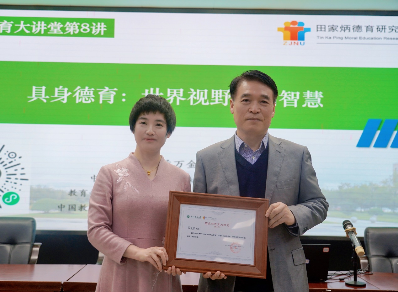 会后,中心常务副主任查颖教授为孟万金教授颁发“田家炳德育大讲堂”纪念证书。