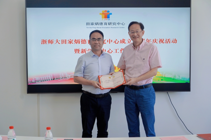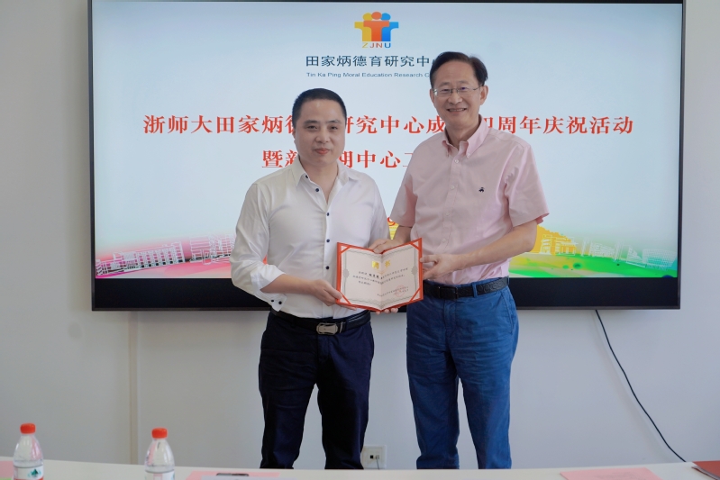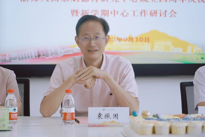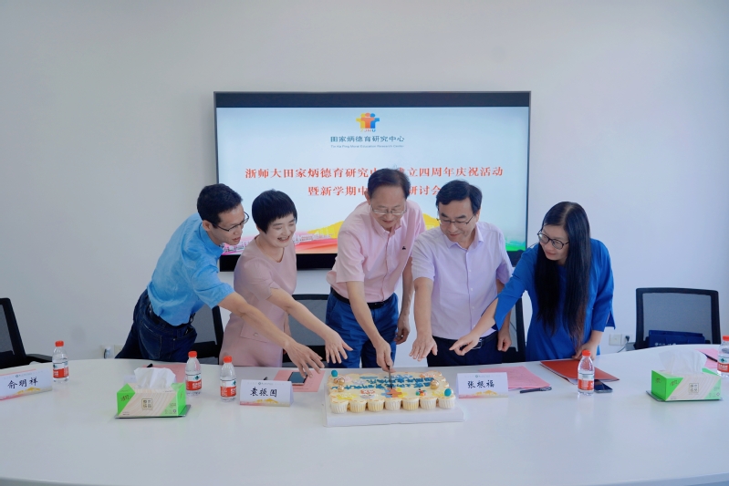 2023年9月10日,浙江师范大学田家炳德育研究中心(以下简称“中心”)隆重举行中心成立四周年庆祝活动暨新学期中心工作研讨会。浙师大副校长张根福,中心主任袁振国,中心常务副主任查颖,教育学院院长黄晓、党委书记俞明祥,浙师大社科处处长、中心德育理论研究所所长冯昊青,心理学院院长、中心德育神经科学实验室主任孙炳海,法学院院长、中心德育与法制研究所所长吴卡,马克思主义学院副院长、中心教师德育能力发展研究所新任所长林子赛,中心儿童道德发展研究所所长李庆功,中心教师德育能力发展研究所前任所长、浙师大教育集团教育科研部主任蔡志良,中心研究员、国际积极心理学会理事任俊,中心研究员、马克思主义学院教授肖祥,中心研究员、法学院教授宋高初以及中心其他研究人员共计20余人参加活动。活动由中心常务副主任查颖主持。