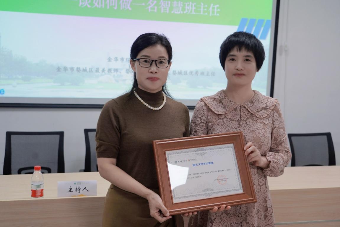 讲座最后,中心常务副主任查颖教授作总结发言。她指出,童老师的讲座生动、活泼、实操性强,给大家未来从事班主任工作、从事学校德育工作指明了方向、提供了方法。中心将邀请更多的特级教师、教学名师、优秀班主任做客“田家炳德育大讲堂”,欢迎同学们持续关注。随后,查颖教授为童老师颁发“田家炳德育大讲堂”纪念证书。
