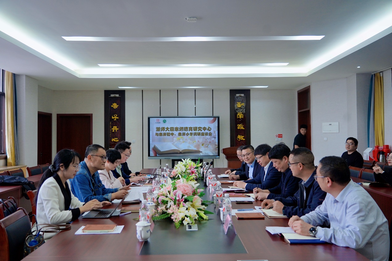 4月11日,浙江师范大学田家炳德育研究中心(以下简称“中心”)应邀赴义乌市赤岸小学、赤岸初中调研指导。中心常务副主任查颖教授,国际积极心理学会理事、中心研究员任俊教授,办公室主任彭年强、秘书何丹宁,中心刘小柳博士、潘士美博士等共同前往。义乌市教育局党委委员、副局长吴彩军,基础教育科科长余根辉,义乌市赤岸教育服务中心主任冯向龙,赤岸小学校长何奇斌、专职副书记朱履平、副校长朱晓华,赤岸初中校长陈春良、专职副书记石孟钰、副校长李田玲以及各科室主任、大队辅导员等参与本次调研。