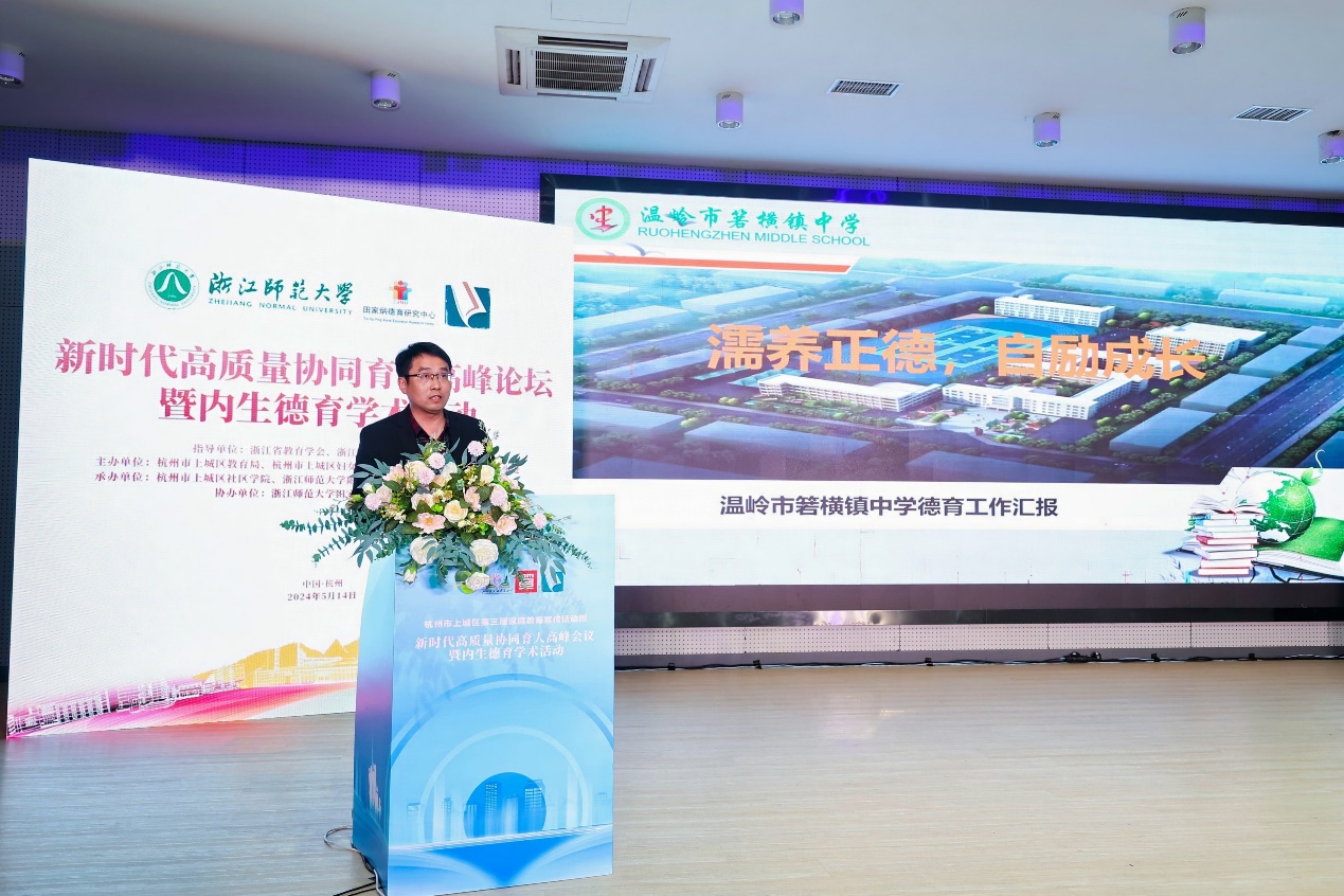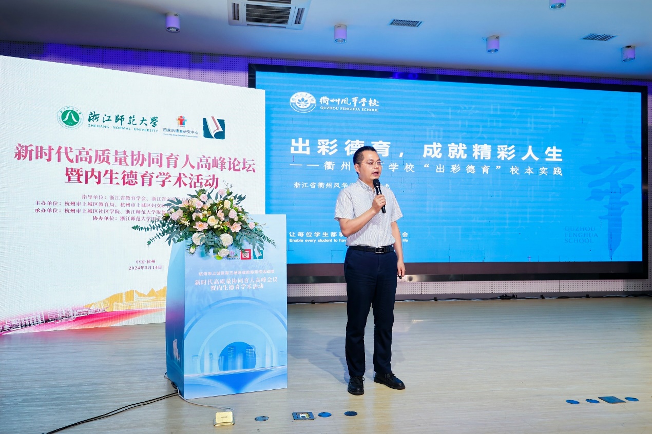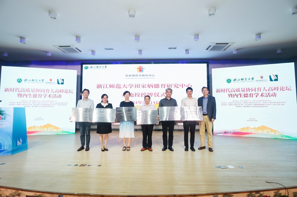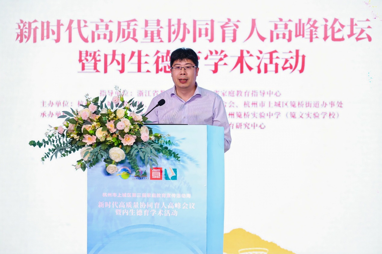 2024年5月14日,浙江师范大学田家炳德育研究中心(以下简称“中心”)参与协办新时代高质量协同育人高峰论坛暨内生德育学术活动。中心主任袁振国教授、常务副主任查颖教授、办公室主任彭年强、秘书何丹宁参与本次活动,活动在浙江师范大学附属杭州笕文实验学校举行。北京师范大学教授边玉芳,浙江省教育科学研究院院长朱永祥,《中国德育》副主编、编审刘洁,浙江省家庭教育指导中心副主任赵云丽,浙江教育报正高级编审言宏,杭州市上城区委常委毛素云,杭州市教育局德体卫艺处副处长梁树波,上城区教育局党委书记、局长项海刚,副局长王世美等相关专家、领导以及来自上城区各中小学校长、中心17所基地校校长、家长代表等三百余人参与本次活动。