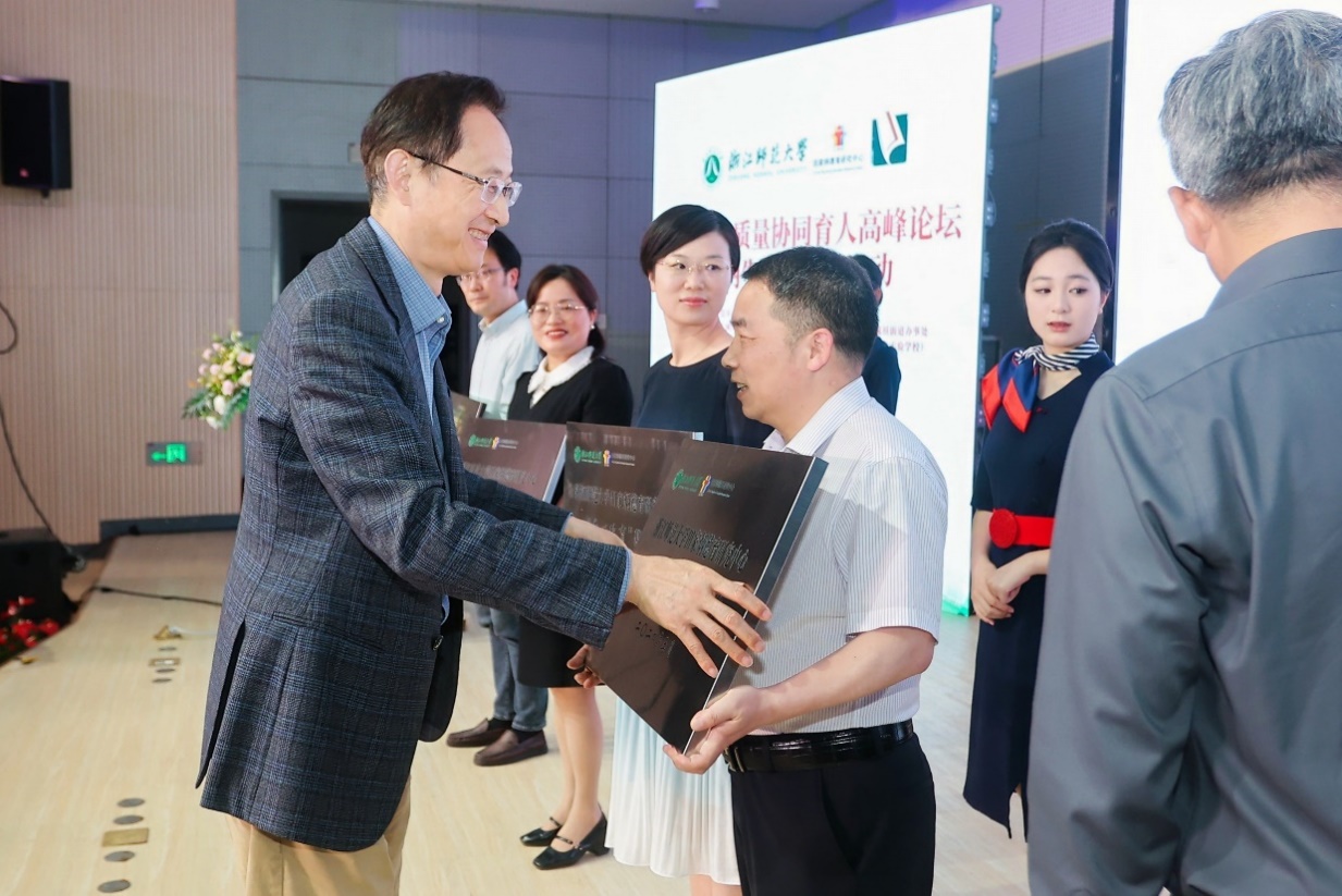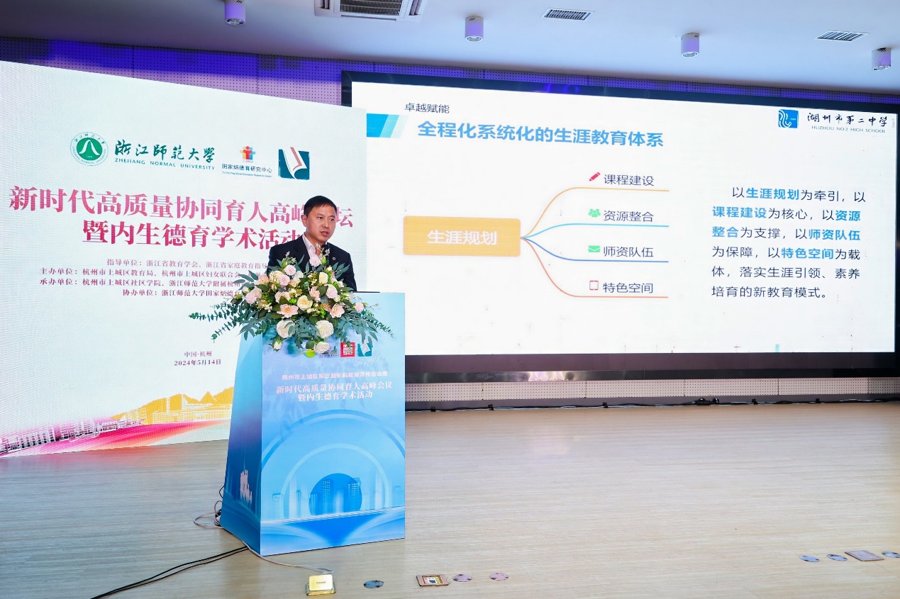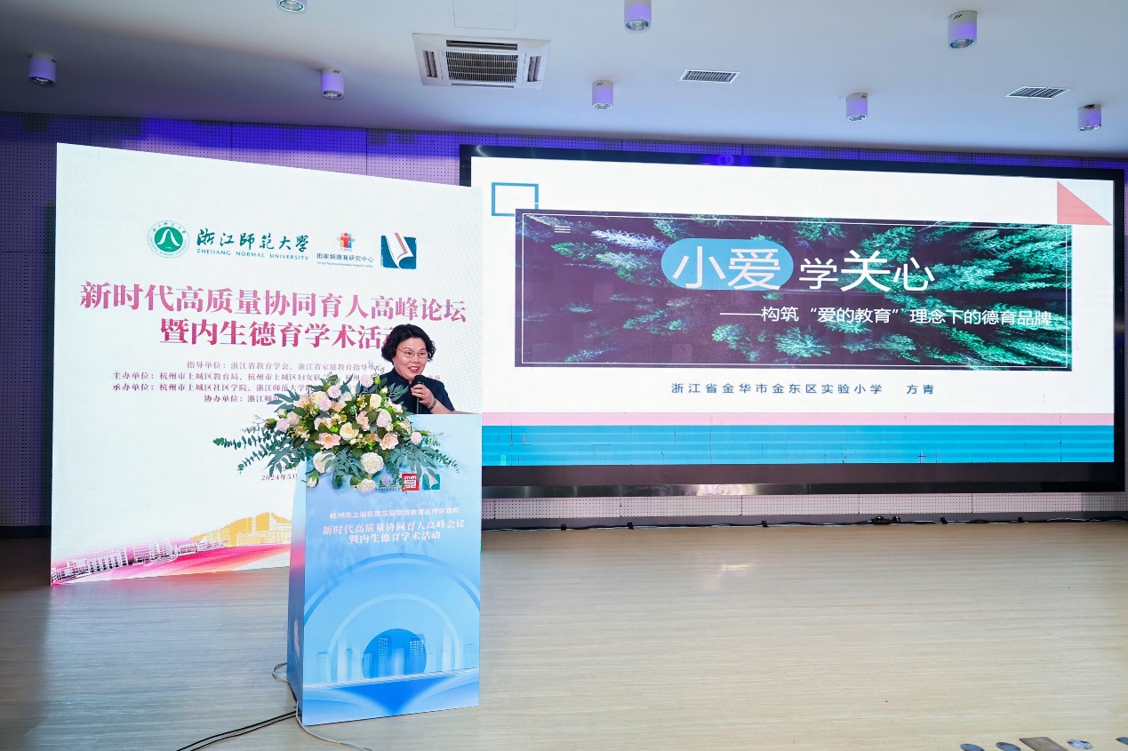 2024年5月14日,浙江师范大学田家炳德育研究中心(以下简称“中心”)参与协办新时代高质量协同育人高峰论坛暨内生德育学术活动。中心主任袁振国教授、常务副主任查颖教授、办公室主任彭年强、秘书何丹宁参与本次活动,活动在浙江师范大学附属杭州笕文实验学校举行。北京师范大学教授边玉芳,浙江省教育科学研究院院长朱永祥,《中国德育》副主编、编审刘洁,浙江省家庭教育指导中心副主任赵云丽,浙江教育报正高级编审言宏,杭州市上城区委常委毛素云,杭州市教育局德体卫艺处副处长梁树波,上城区教育局党委书记、局长项海刚,副局长王世美等相关专家、领导以及来自上城区各中小学校长、中心17所基地校校长、家长代表等三百余人参与本次活动。