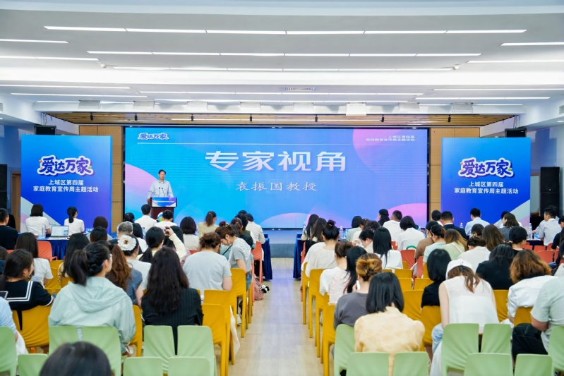 中心主任袁振国教授作专题报告。他强调,校家社三方要加强互动,建立交流和沟通的机制,拓展多元沟通渠道,以双向了解为目标,让教师深入知晓家庭背景、家长的教育理念,家长也能理解学校教育逻辑;要加强合作,共同应对社会变化带来的教育挑战,关注不同家庭的教育期望差异,协调学校教育与家庭教育的目标,形成教育合力;要相互促进,尊重彼此专业领域,教师借鉴家长的个性化教育经验,家长学习科学教育方法,以辩证思维平衡家校协作与孩子自主性。袁教授以高屋建瓴的视角,为上城区家庭教育的发展指明方向,也为家长与教育工作者提供了深刻启发与指导,受到与会人员的一致好评。