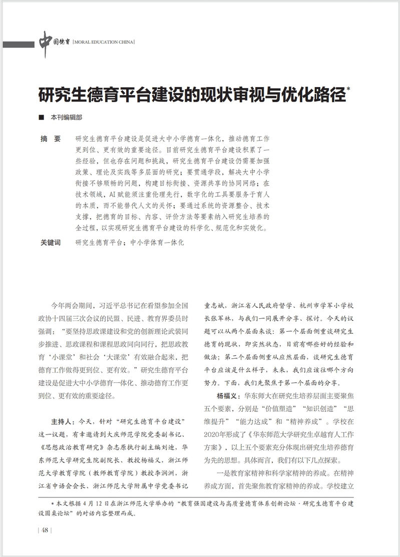 【媒体视角】中国德育:研究生德育平台建设的现状审视与优化路径