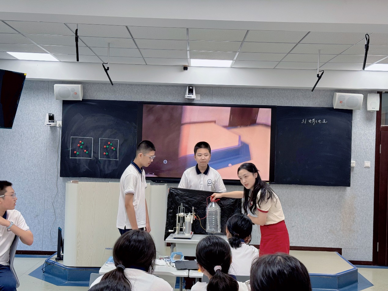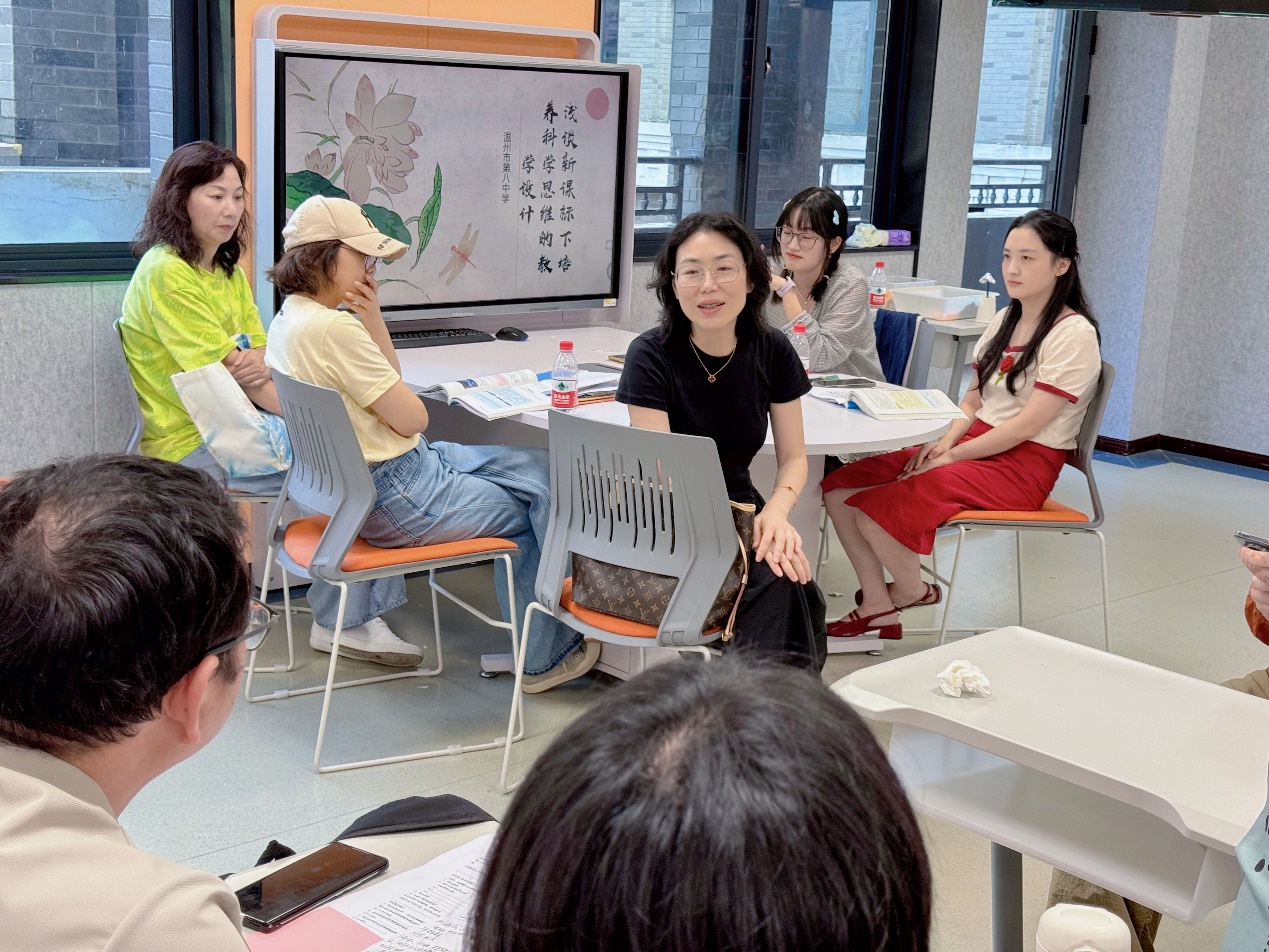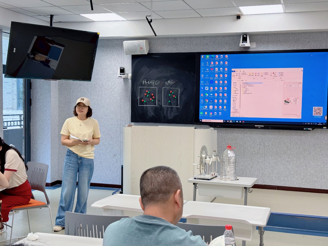 在科学教研环节,温州八中郑秀约老师对两位教师的授课予以充分认可:颜慧瑜老师以魔术视频导入,教学思路由浅入深、环环相扣,重难点落实扎实;关青青老师的课程更契合“双新”理念,以自制静电除尘器装置导入调动学生兴趣,借助AI工具辅助教学,引导学生开展个性化、差异化学习。温州八中吴芳芳老师补充道,关青青老师的课堂既彰显学生主体地位,又展现出极强的课堂把控能力,课程节奏张弛有度,探究环节衔接流畅;实验教学未流于形式,将设计、取证、记录等步骤落到实处,最终以学生自主得出的结论解释开篇静电除尘原理,实现课堂首尾呼应。研讨尾声,温州八中徐乃肃老师作《核心素养导向的科学思维教学》微报告,获得与会教师一致好评。